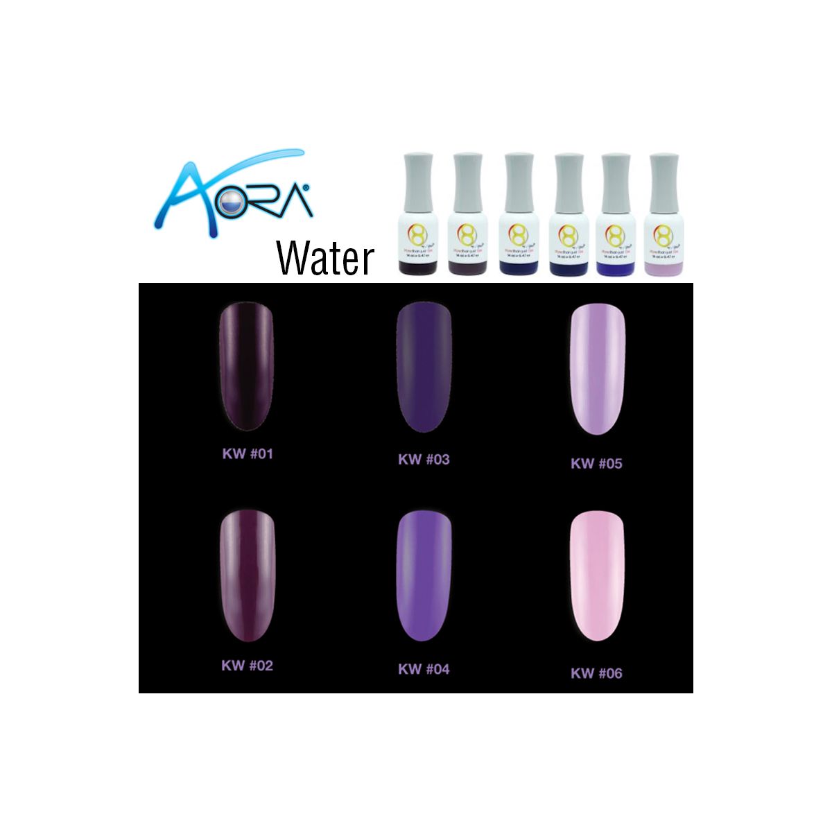 Aora 8 Gel is the new generation in gel technology. Use this easy, workable formula as a superior gel polish or as a gel paint to create wonderfully creative designs. Its advanced formula is safe to use and offers many benefits that allow you to enjoy perfect color and coverage with no worry. Aora 8 Gel has 60 different colors offered in 10 beautiful collections to suit any mood and occasion.