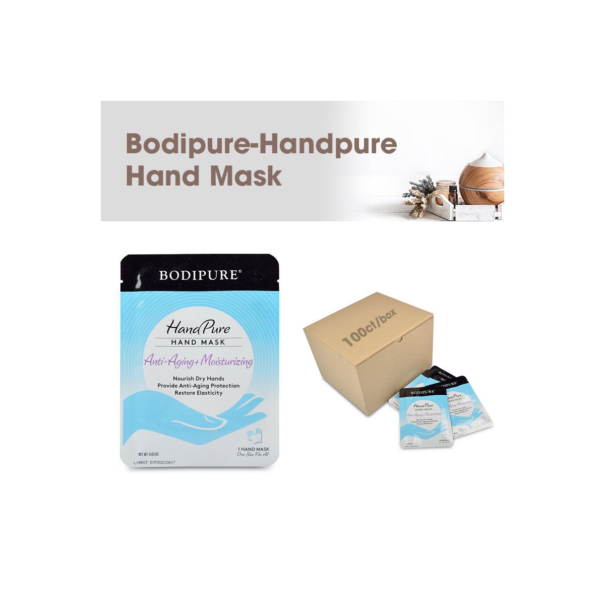 Bodipure HandPure Hand Mask is an intense, all-in-one, anti-aging hand mask that gives immediate relief for dry, dull skin and restores elasticity and hydration, leaving you with smoother, younger-looking hands.