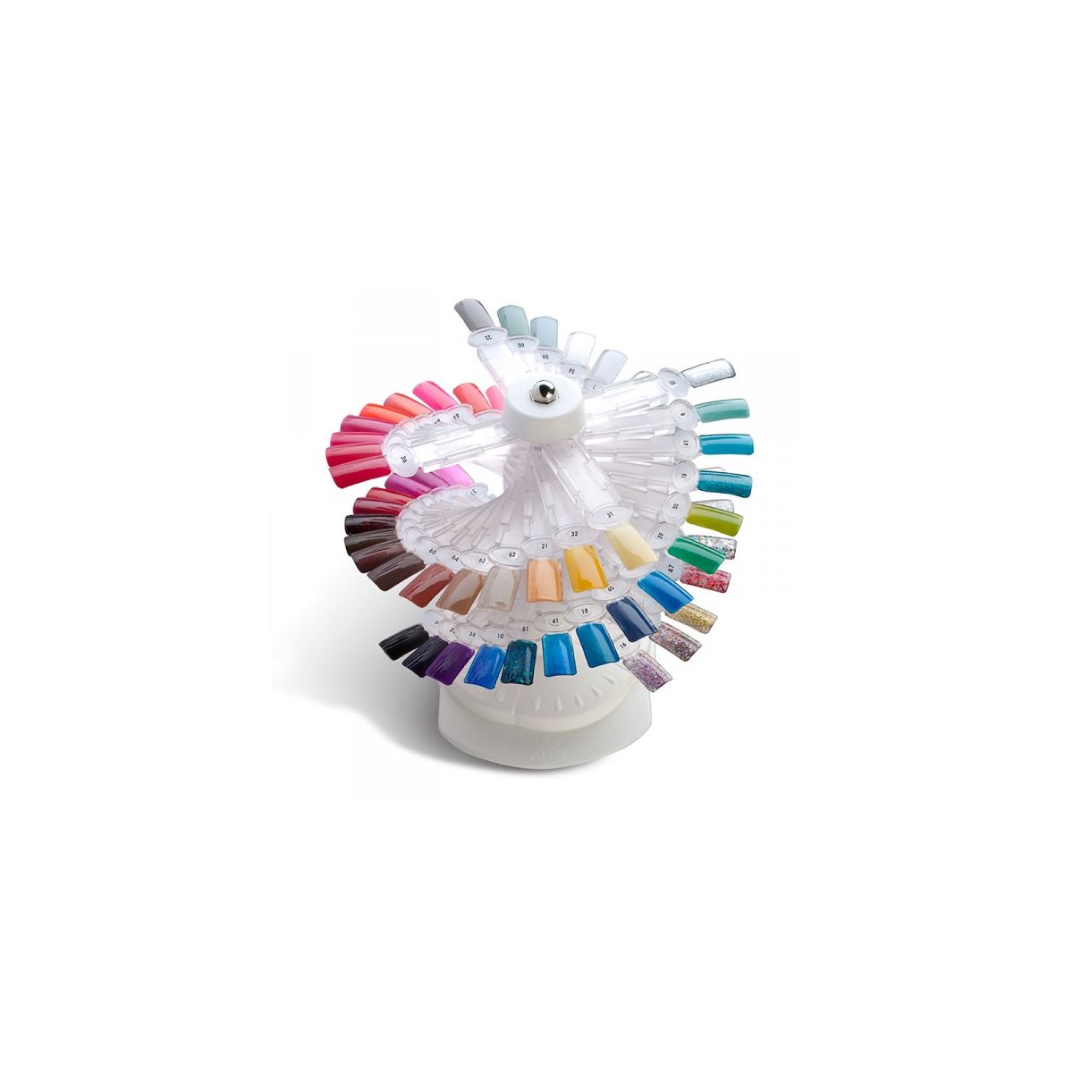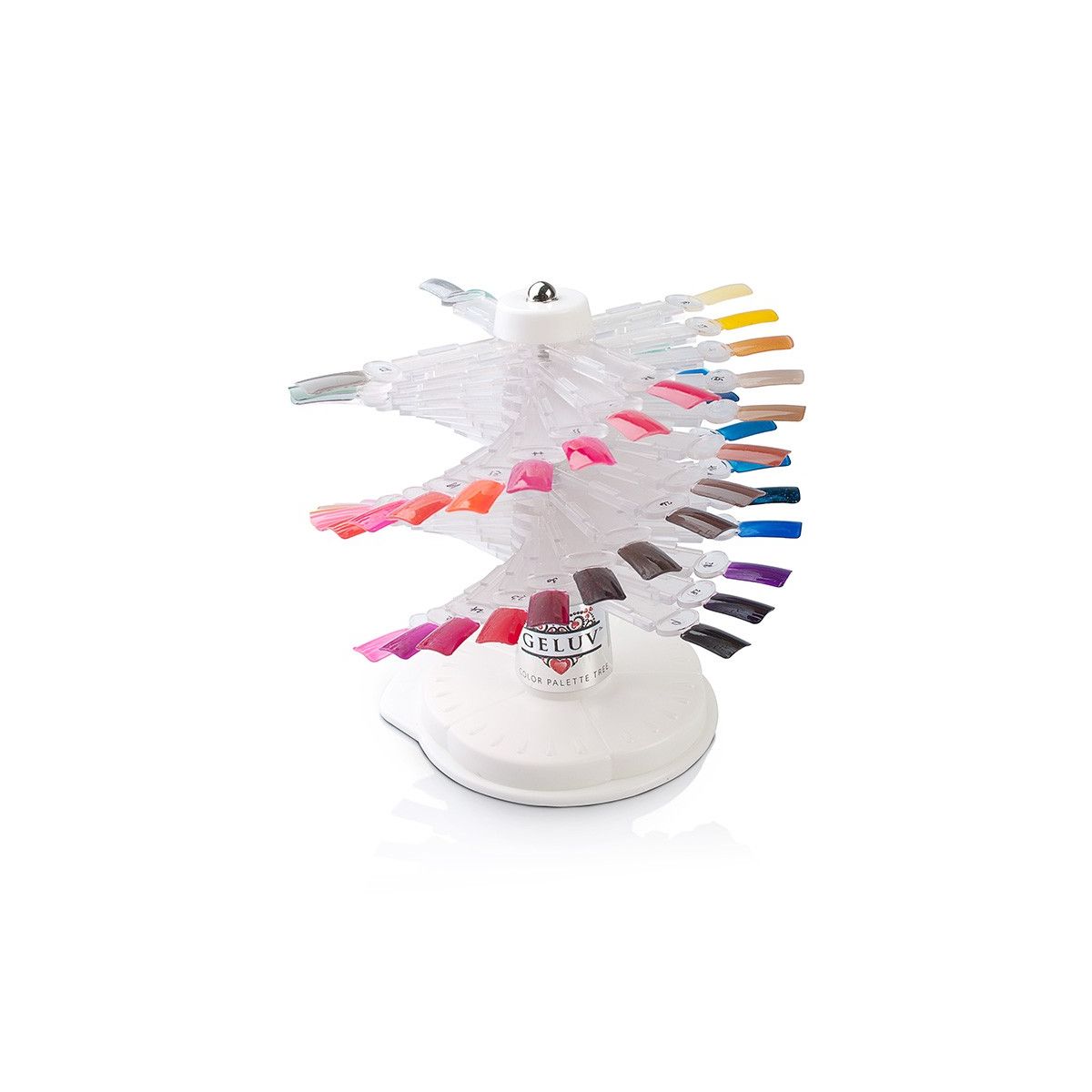 A convenient and stylish way for clients to browse your color collection and let them choose their favorite Geluv gel color, polish, or nail art design. The Geluv tree comes fully assembled and offers multiple benefits —its rotating spiral design looks beautiful and takes up much less space than displaying all your bottles. This tip display tree includes blank tips and two sets of numbered stickers to match painted tips with their corresponding bottles, so techs can quickly retrieve the correct bottle. This efficient system also safeguards your inventory by making bottles accessible to employees only. Plus, your clients can see the true finished look of the dried color on the tips, leading to better choices and happier customers.