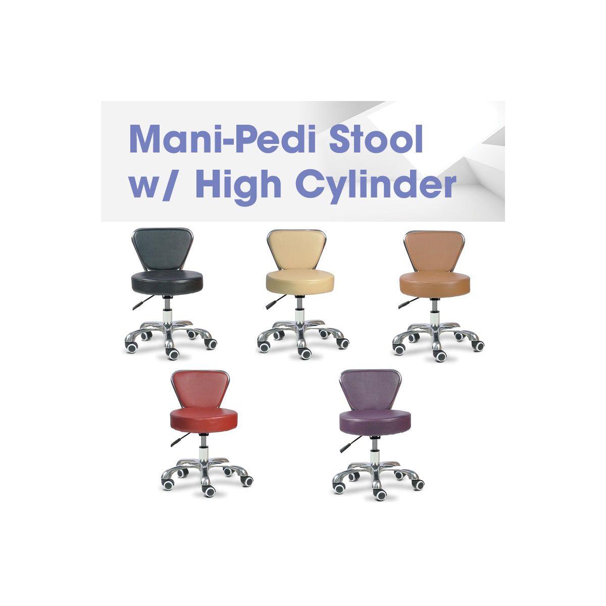 Our versatile mani-pedi stools with high cylinder are height adjustable to help find a comfortable position for multiple uses around the salon, and is designed for support and easy mobility in a busy work environment. Made to hold up to heavy, long-term use, its PU leather upholstery is easy to clean and available in many beautiful colors.