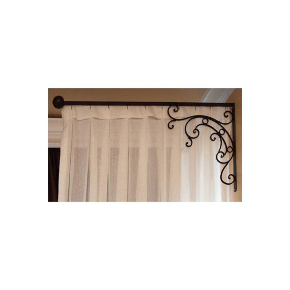 Lovely ornate metal scroll rod for hanging privacy drapes adds a touch of old-world elegance to your salon. Use to hang your luxuriously full pinch pleated drapery.*