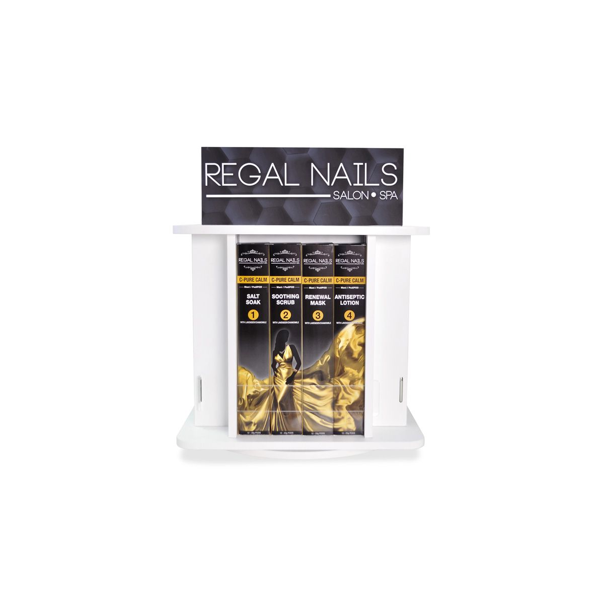 The perfect space-saving solution to organize and display your Regal PODs.