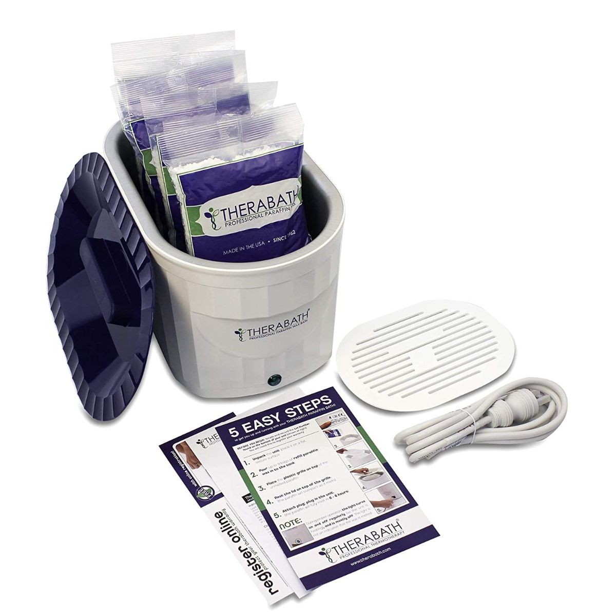 This professional paraffin wax bath system includes luxuriously soft peach paraffin wax and heats it to a perfect even temperature for immersion, providing soothing heat therapy to relieve a variety of ailments and promote soft, supple skin. Offer the many benefits of a therapeutic paraffin wax treatment, which include deep moisturizing for dry skin, alleviating arthritis pain and inflammation, and soothing sore feet and aching muscles.