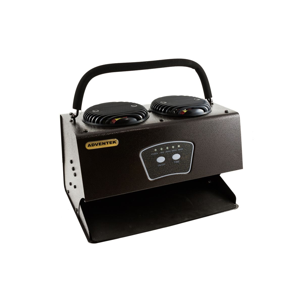 Combination of dual fans and 75W UV bulbs produce heated forced air for fast, even drying