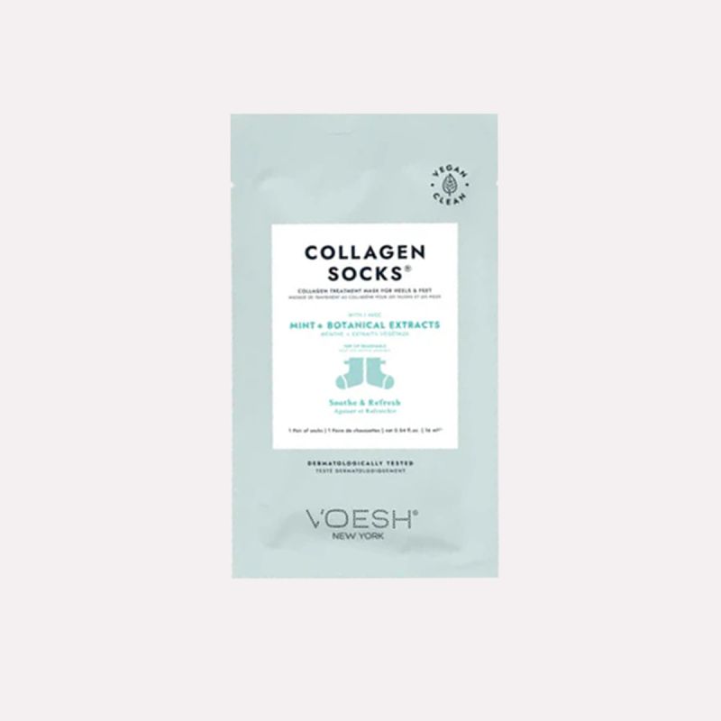 VOESH UV protective Collagen Socks bring a new innovation to pedicure treatments. Pamper your feet more than ever and save time by giving feet an intense moisturizing treatment during a pedicure.When ready for your pedicure, simply remove the tips of the toes by gently tearing along the perforated precut lines. Each sock is preloaded with 16ml of Vitamin E and collagen rich emulsion to penetrate and moisturize the skin.